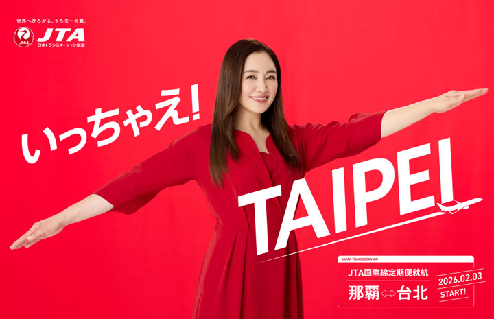【2/3運行開始】JTA初の国際線、那覇−台北 仲間由紀恵さんがPR